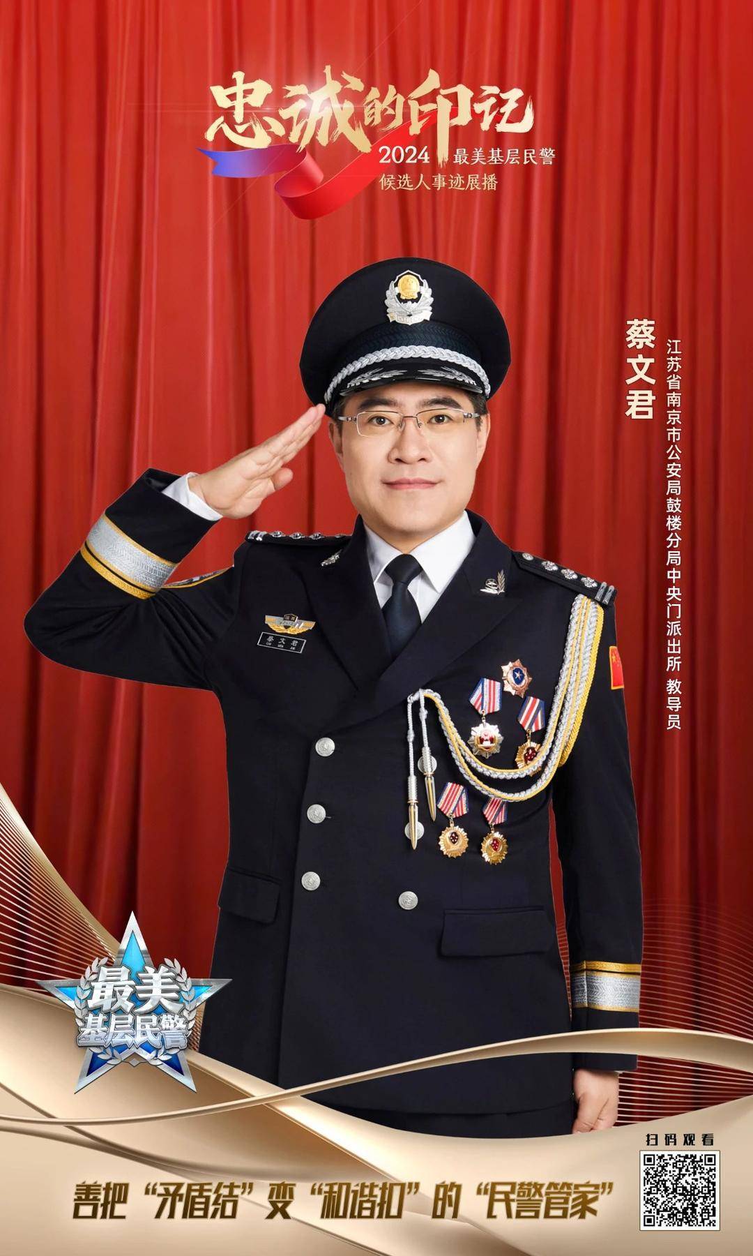 蔡文君,男,汉族,1980年9月生,中共党员。2003年8月毕业于南京理工大学,行动选调生投入公安处事,现任南京市公安局饱读楼分局中央门派出所率领员。蔡文君先后荣立个东谈主一等功1次、三等功4次,获嘉奖9次、优秀公事员10次,获评寰宇公安系统二级英豪程序、寰宇公安机关成绩凸起个东谈主、江苏省五一处事奖章、江苏省政法先进典型、江苏最好意思有观看、南京市处事程序、南京市优秀共产党员、南京市十佳政法干警、南京最好意思有观看等荣誉。