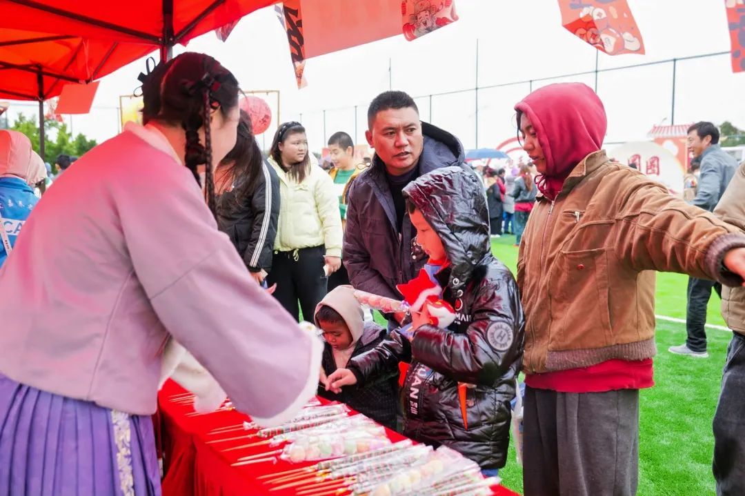 本次行动设定在龙尾足球场,以游园的体式开展。走进行动现场,映入眼帘的就是一派烦躁超卓、年味竣工的表象。扫数所在被庇荫得红红火火,五颜六色的彩带谦让球相互交汇,营造出欢快而浓烈的氛围。各个边际都足够着春节专有的喜庆气味,让东谈主短暂感受到了浓浓的年味儿。